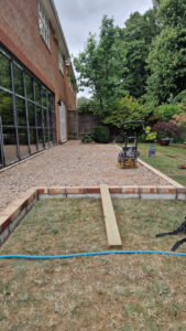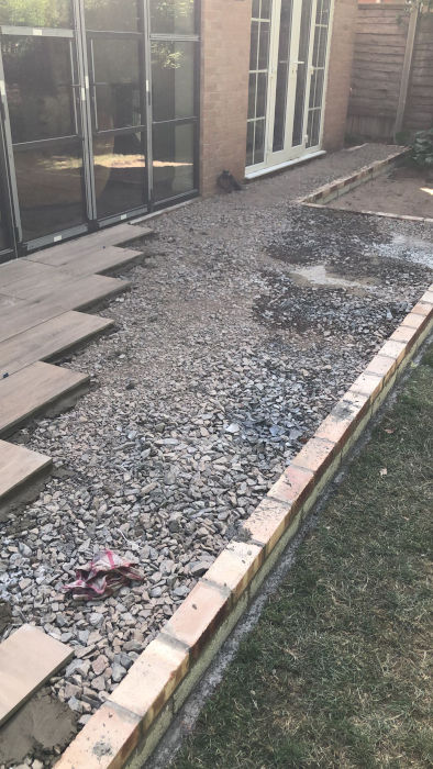 We started by digging out for a strip footing for the bricks, this was then block then fill with hardcore, compacting to give us a good level surface to the beautiful porcelain slabs.